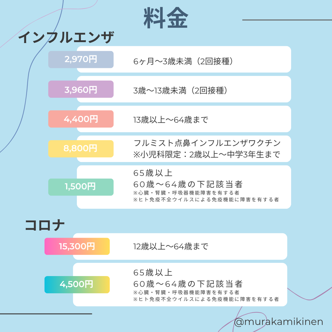 10月1日より、インフルエンザ・コロナ予防接種 が始まっています。