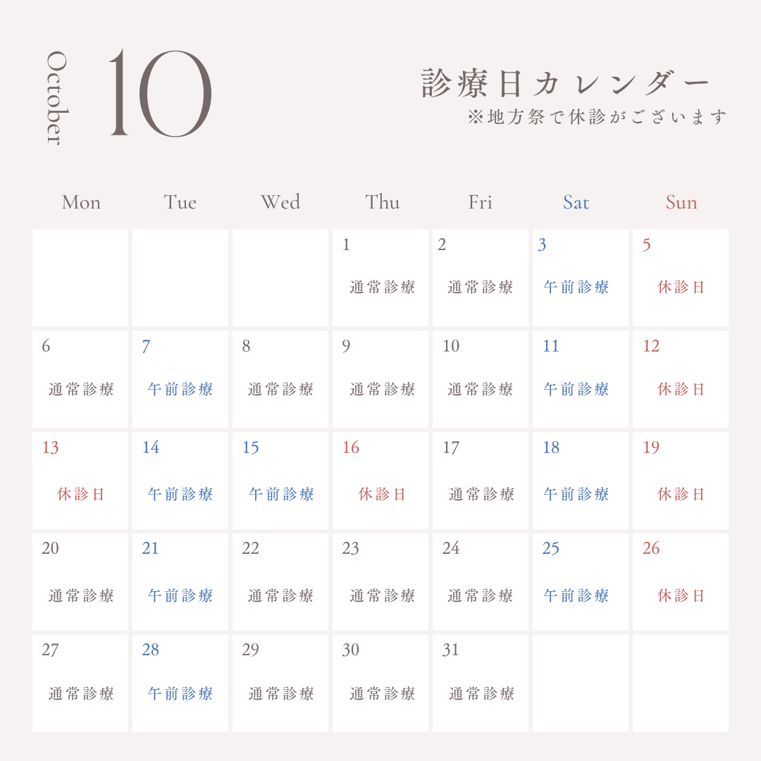 📌 10月15日(水) 午後休診📌 10月16日(木) 終日休診