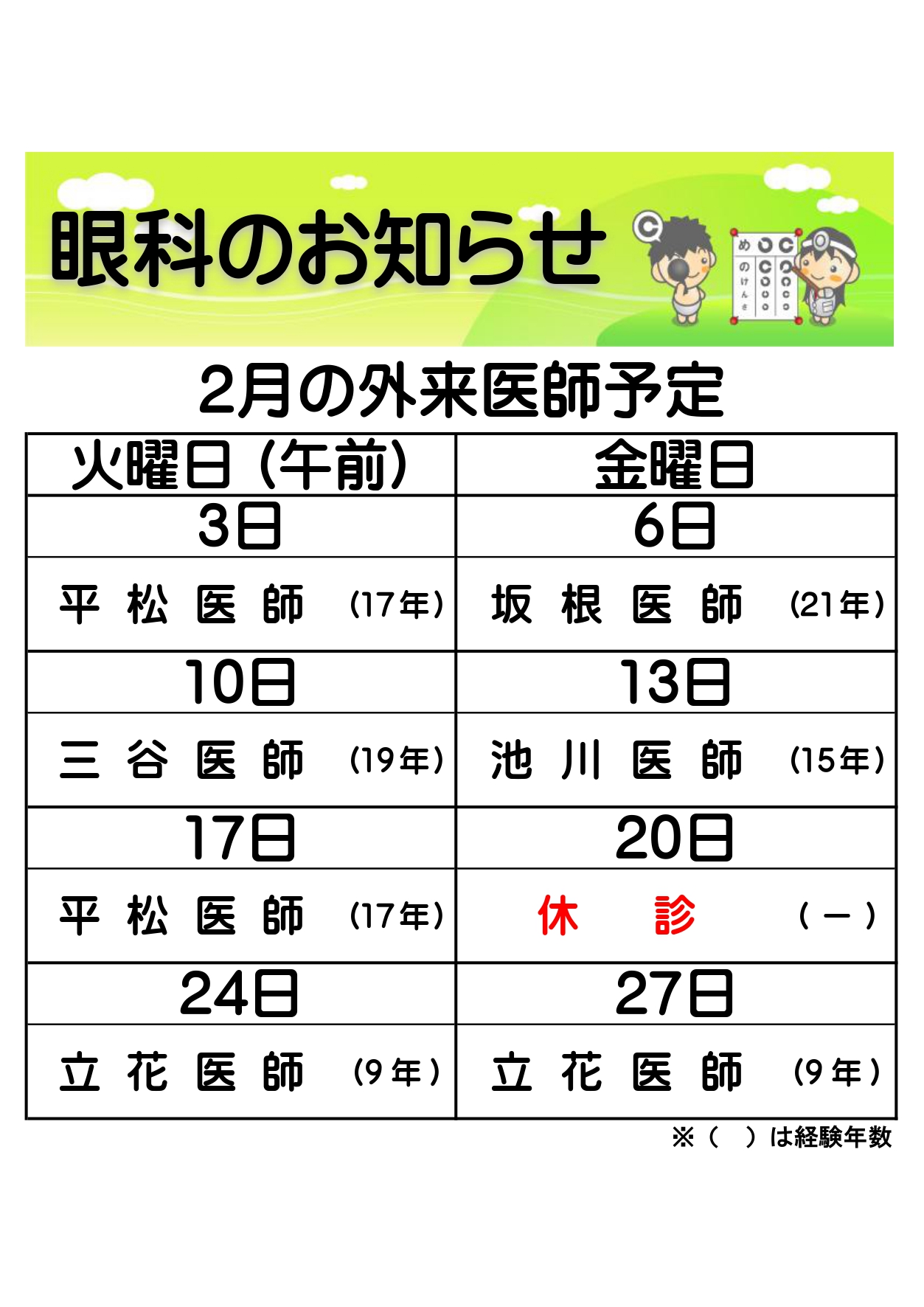 ※科目によって診療日時が異なります。 休診情報はこちらからご確認ください。