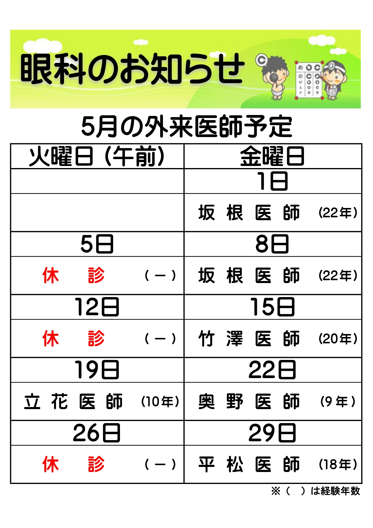 ※科目によって診療日時が異なります。 休診情報はこちらからご確認ください。