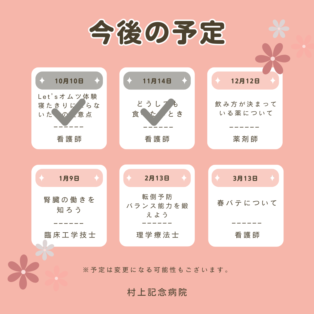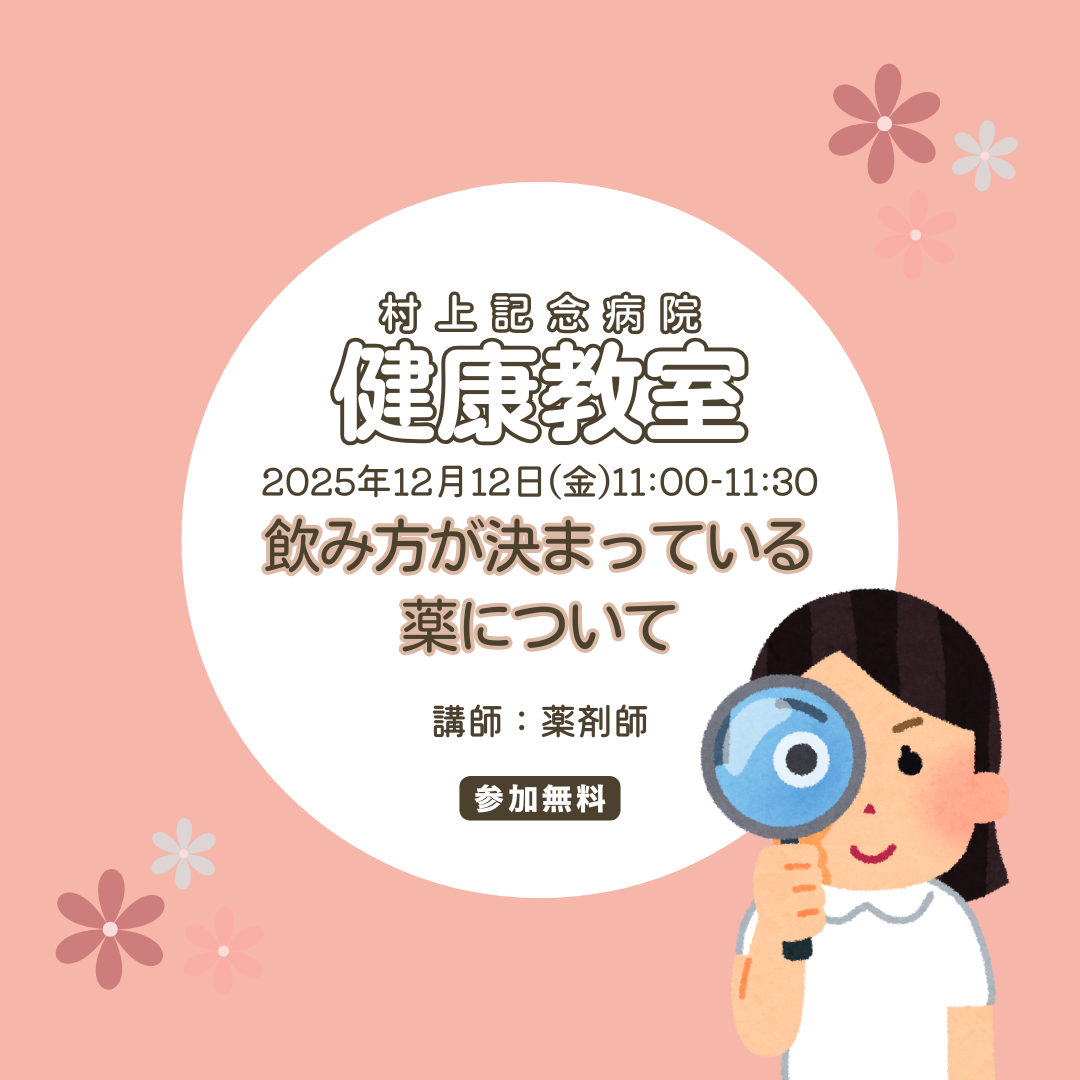 🗓 開催日:12月12日(金) ⏰ 時間:午前11時~(約30分) 📍 場所:村上記念病院 1階 イートラウンジ西側